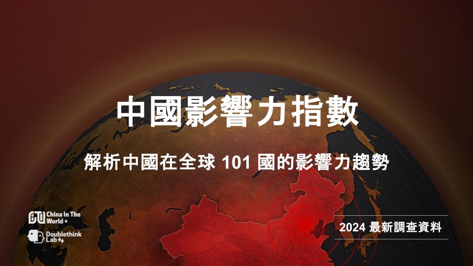 最新的「中國影響力指數」提供迄今最全面的中國(中華人民共和國)全球影響力研究成果,追蹤涵蓋 101 個國家、99 項指標與九大領域的變化趨勢。